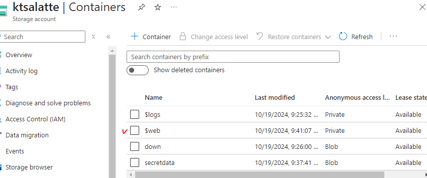 secretdata 컨테이너에 올린 파일의 권한 변경 (private -> Blob)