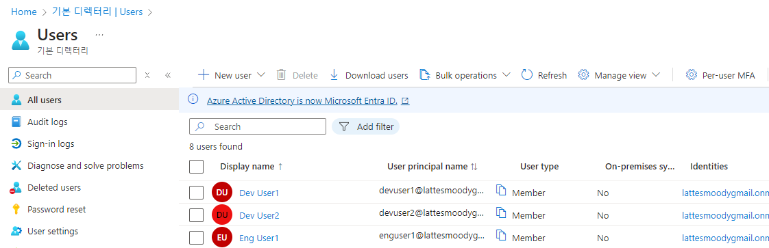 - azure microsoft authenticator 활성화 (Per-user MFA 눌러서 활성화 시키기)