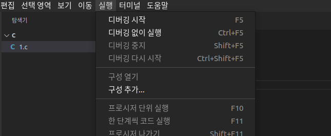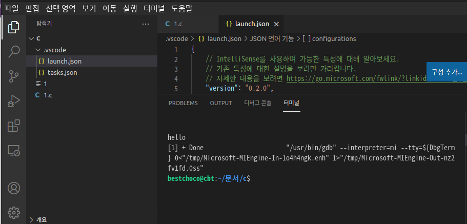 8. launch.json은 닫는다. (.vscode 폴더와 ~~~.c와 같은 이름을 가진 ~~~은 삭제하지 말기.)