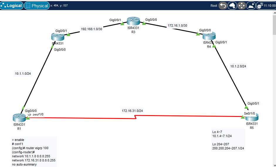 R5(config-if)#ip summary-address eigrp 100 10.1.4.0 255.255.252.0