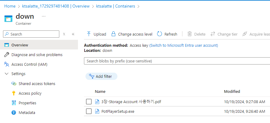 [azure 수업 - 20241019 2일차 3장 (Storage Account)]