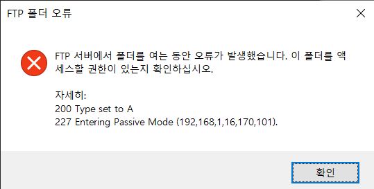 1. 외부IP와 포트 번호를 입력하여 ftp에 접속하면 아래와 같은 오류가 뜬다. [사진 1]
