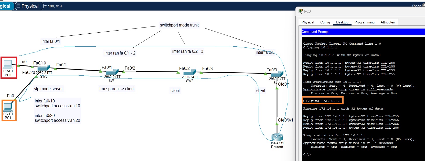 - VTP 모드 (server, client, trasparent)