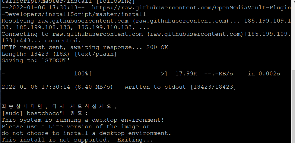 라즈베리파이 OMV6 설치 에러 (Lite version이 아닌 desktop 환경)