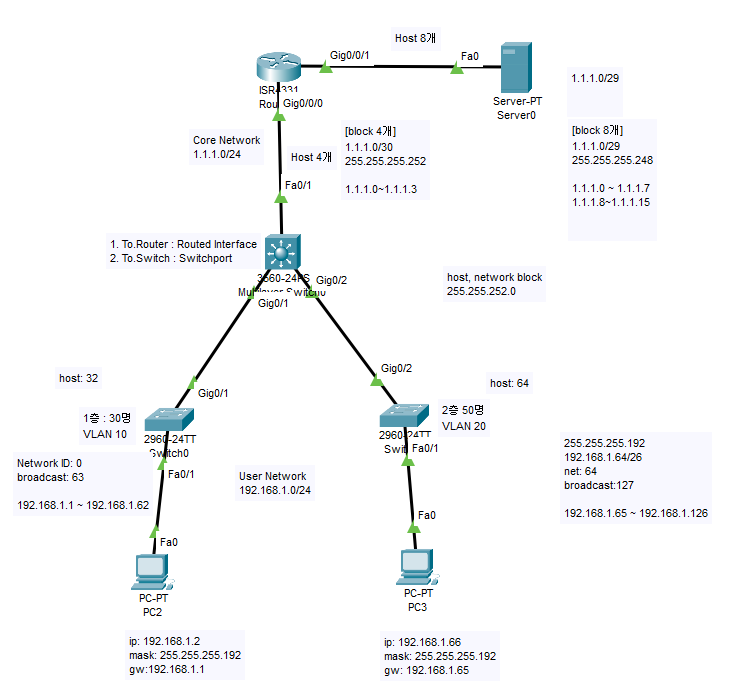 ip route 192.168.1.0 255.255.255.192 1.1.1.2